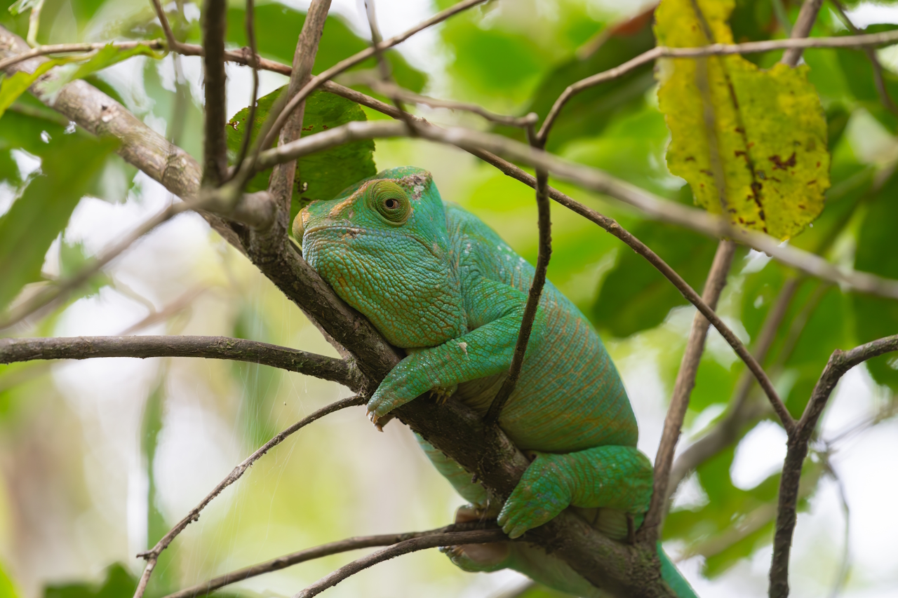 The next day we visit the volcanic crater lake Tritriva. After a beautiful hike, we continue the journey to the Ranomafana National Park. We enjoy the thermal pools and – located just below a Lychee tree – also get very fresh snacks from just above. The next day we see the two types of animals Madagascar is most famous for: Lemurs and Chameleons. During a long hike in the park we spotted different varieties of Lemurs and got very excited seeing the first ones. Similar to Kenya and seeing the first Zebras – while after a while you just get used to them. Later that day we find the Parsons chameleon, the biggest of all chameleons.