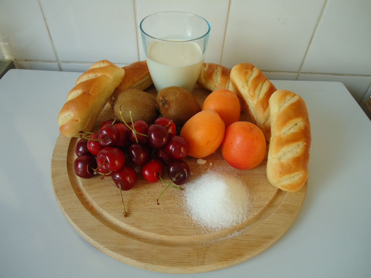 Comment faire : Laisser chauffer les petits pains dans le four pour quelques minutes pour les laisser faire croquants. Couper des fruits et les mélanger. Fouetter la crème et faire du caramel avec le sucre. Après il faut mettre la crème sur les petits pains, les fruits au dessus, et puis mettre un peu du caramel =)