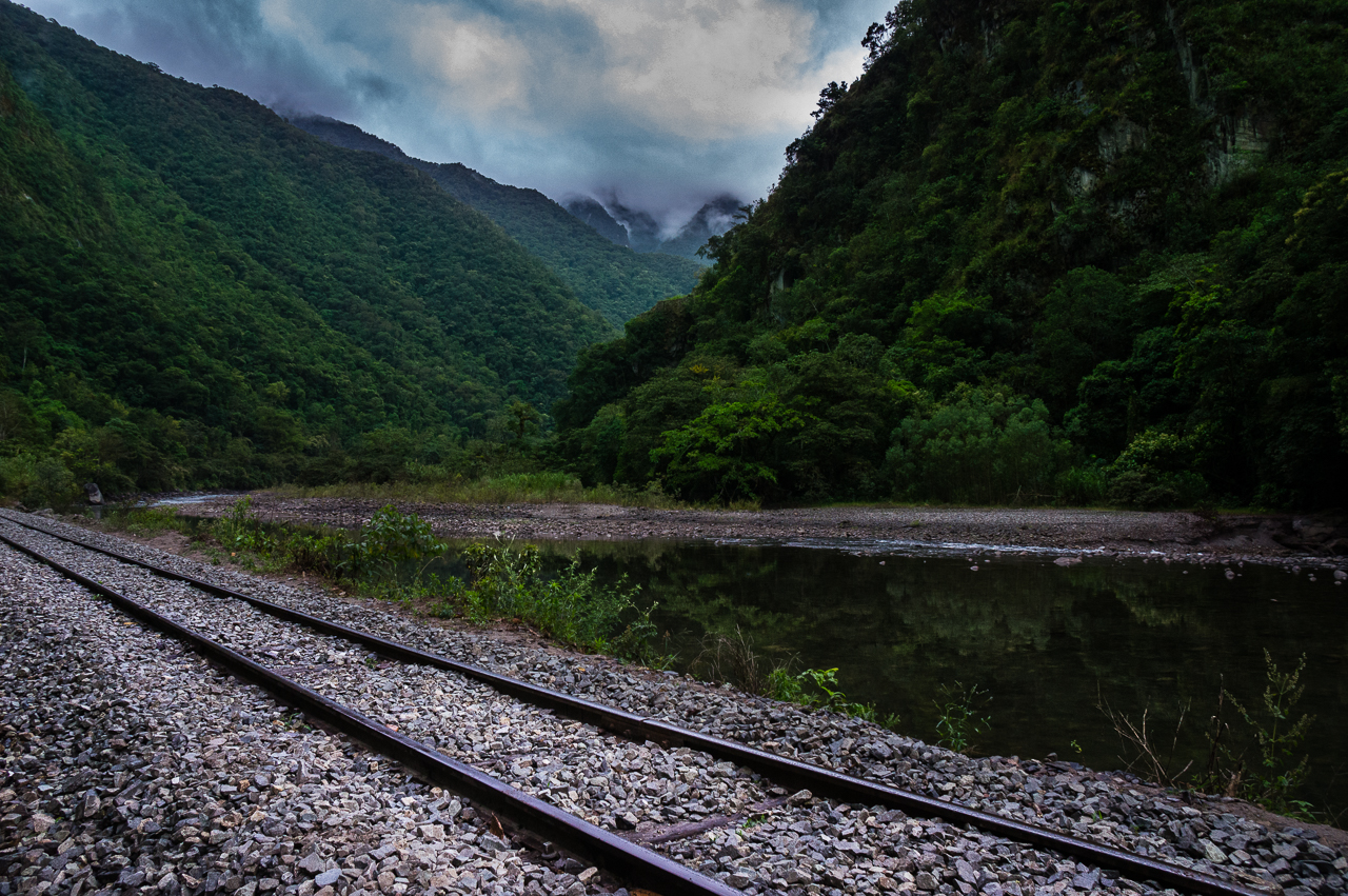 Per Transporter ging es von Cusco aus 7 Stunden bis nach Hydroelectrica, der Ausgangspunkt einer Wanderroute, um nach Aguas Caliente zu kommen. Aguas Caliente ist ein kleines Städtchen in der Nähe von Machu Picchu. In Hydroelectrica startete eine Route entlang von Bahngleisen (man  hätte das ganze auch per Zug zurücklegen können aber das wär ja langweilig gewesen ;D ), eine wirklich schöne Route über Brücken, am 20140727-DSC05735Dschungelrand entlang, neben einem Fluss, während man an einigen Stellen weit über einem schon die ersten Terassen der alten  Inkastadt sehen konnte. Da wir erst relativ spät mit dem Transporter ankamen, wurde es zum Ende der Wanderung langsam düster, bis es dann ganz dunkel war. Zum Glück hatte ich an eine Taschenlampe gedacht.