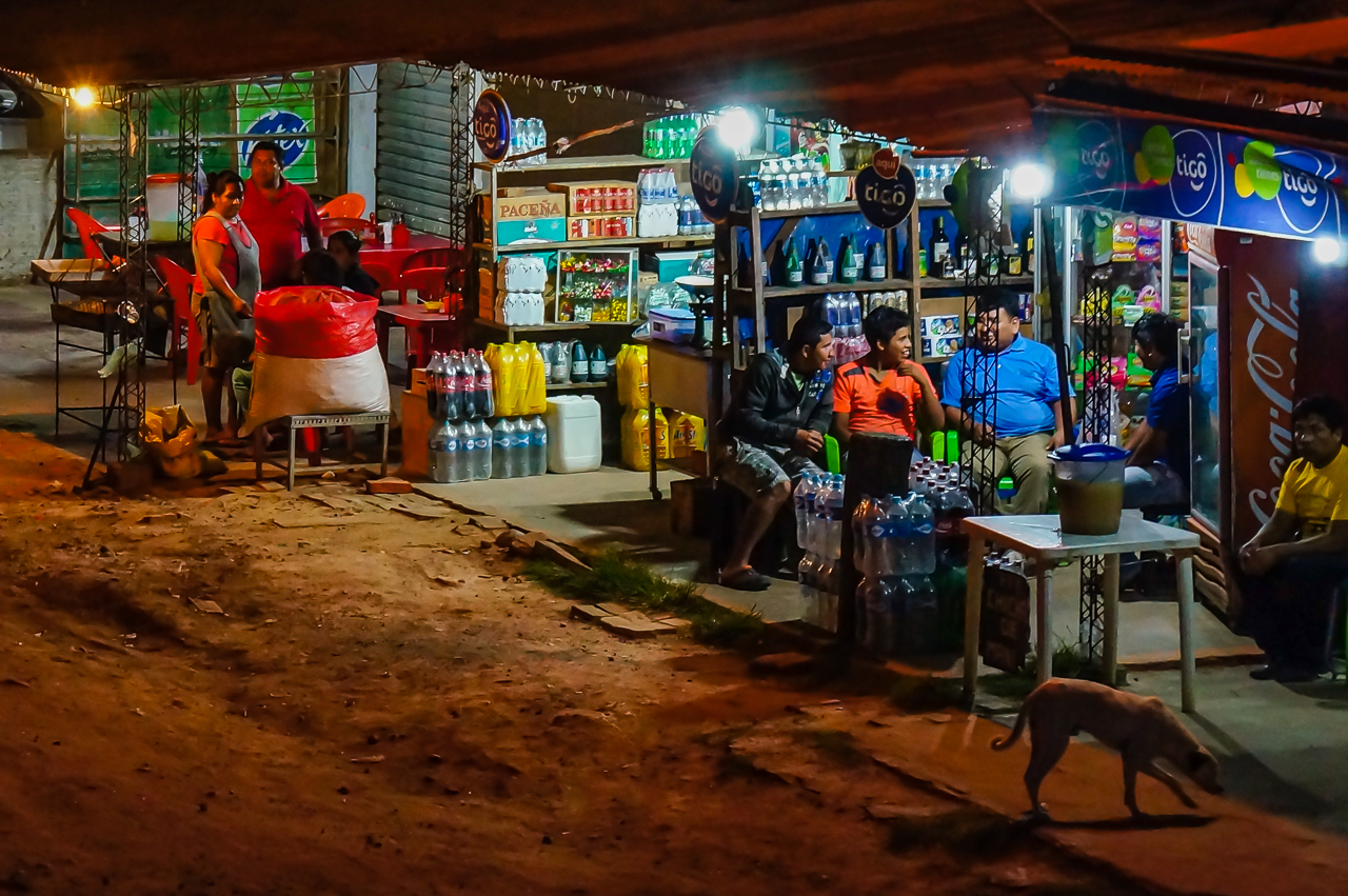 Morgens in Santa Cruz angekommnen, hatten wir ein paar Stunden Aufenthalt und Zeit, die Stadt zu erkunden. Diese nutzten wir gut zum Fusballspielen mit dem neu gekauften Fussball in den Gaengen einer Riesenmall (mit dem einzigen Starbucks in Bolivien (munkelt man, wir haben ihn aber nicht gefunden), bis wir freundlich rausgebeten wurden. Auch auf dem Rasen vor der Mall sollte wohl gerade geschont werden…Wir gingen in einem traditionellen Restaurant essen, bevor es abends wieder in den Bus ging, nach Chiquitania, wo es in verschiedenen Doerfern Kirchen aus der Kolonialzeit (bin mir