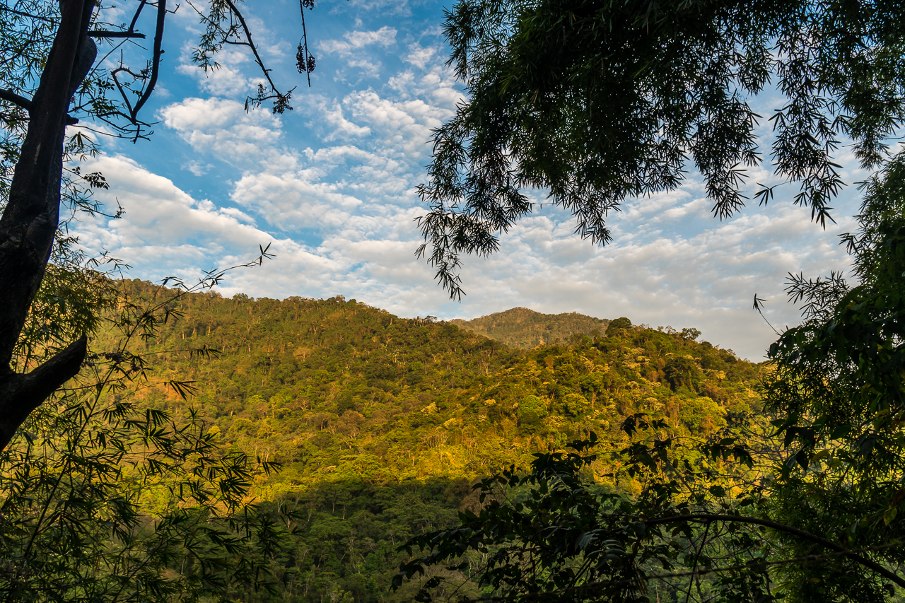 Santa Marta ist ein schönes Städtchen, auch wenn wir uns von den Stränden mehr erwarteten. Doch als Ausgangspunkt für weitere Touren durchaus zu gebrauchen. So machten wir uns nach ein paar Tagen auf eine zwei Stunden typisch südamerikanische Fahrt nach Minca. Das kleine Dörfchen liegt in mitten der tropischen Waldberge und war klimatisch für mich wieder sehr angenehm. Leider auch für sämtliche Stechviecher. Doch waren wir dort noch nicht am Ziel, denn unsere Unterkunft lag noch weiter in die Dschungelberge hinein, erreichbar jedoch nur per Motorrad. So heuerten wir zwei Fahrer an, die uns (und unser Gepäck) doch relativ sicher weiter nach oben brachten. Und dort: el paraíso: tausende Tiergesänge in der Dämmerung, ein kleiner Bachlauf direkt auf dem Grundstück der Lodge. Dschungel um uns herum, mit schönen Wanderungen, Wasserfällen und leckeren Früchten. In einigen Cafés wurden wir dann auch mal gefragt, ob wir „postre“ haben wollen – Nachtisch. Damit war jedoch immer Marihuana gemeint, dass wohl in der Region gerne angebaut wird.